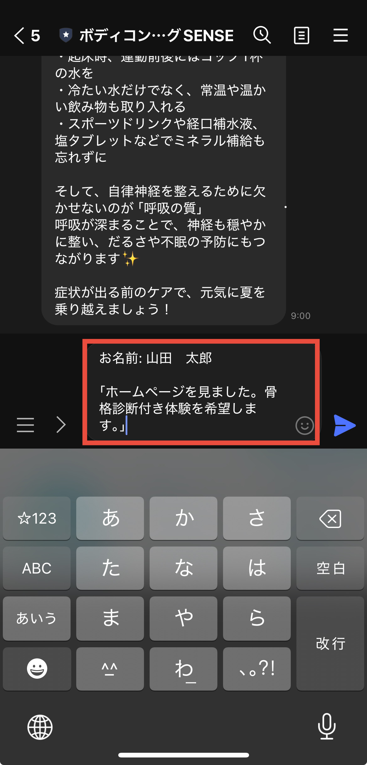 骨格診断付き体験を希望します。」