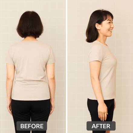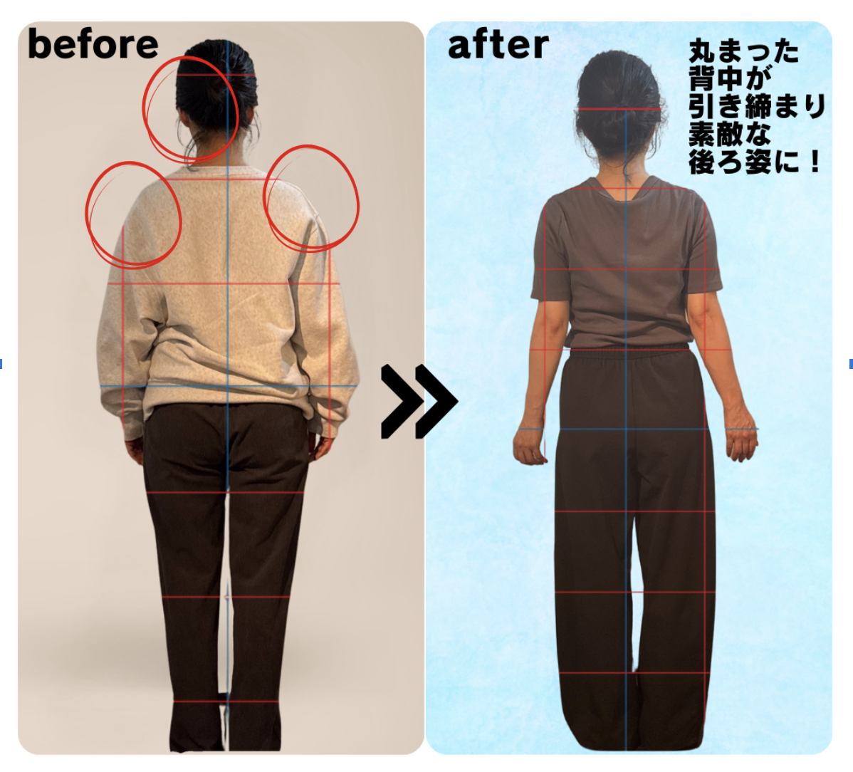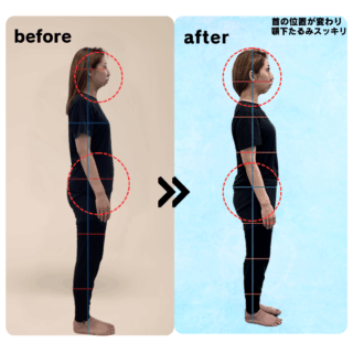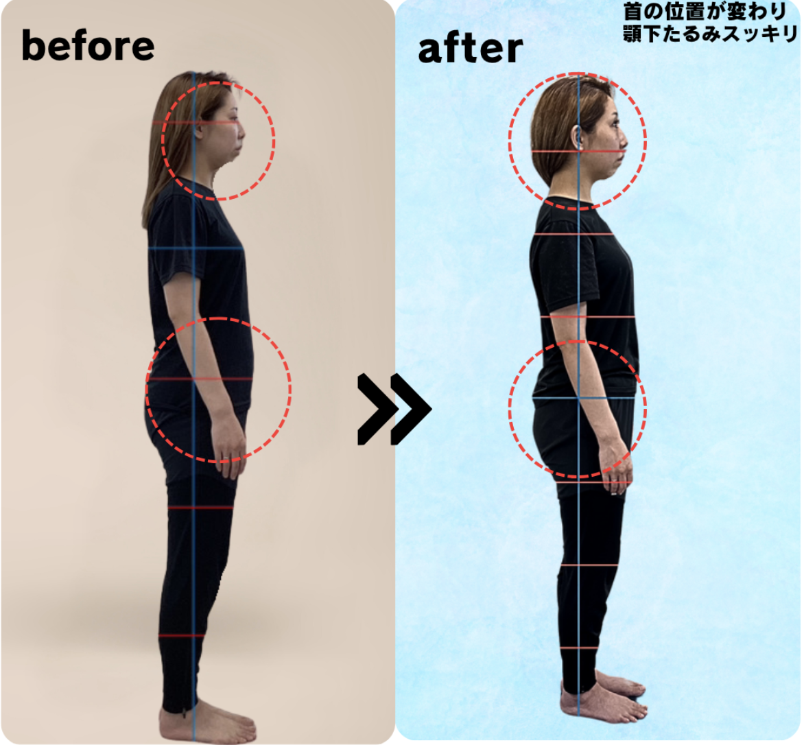 パンツを履いたとき、自分でも驚くヒップラインに。 「産後に姿勢が崩れてから、しゃがむと膝が痛い。首や腰もなんとなくずっと不調…」整骨院やストレッチにも通いましたが、正直どれも“その場しのぎ”のように感じていました。 そんなときに出会ったのが...