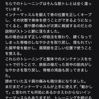 インナーマッスルを目覚めさせ、諦めていた五十肩の痛みもラクに これまでジムやパーソナルトレーニングで、いろいろな筋トレを経験してきましたが、SENSEのトレーニングは全くの別物でした。 インナーマッスルを鍛えて骨の位置を整え、その状態で身体...