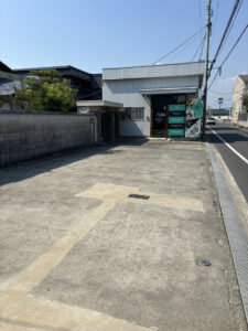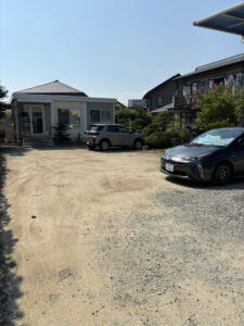 向かってジムを右にして、左の奥まったところにスタジオの建物(スタジオ前駐車場)