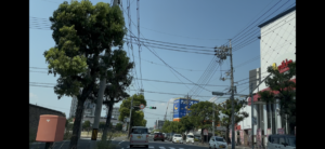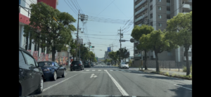 道沿いにジムの建物が見えてきます(ジム前駐車場)